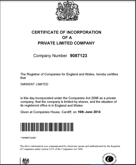 Our Company Certificate